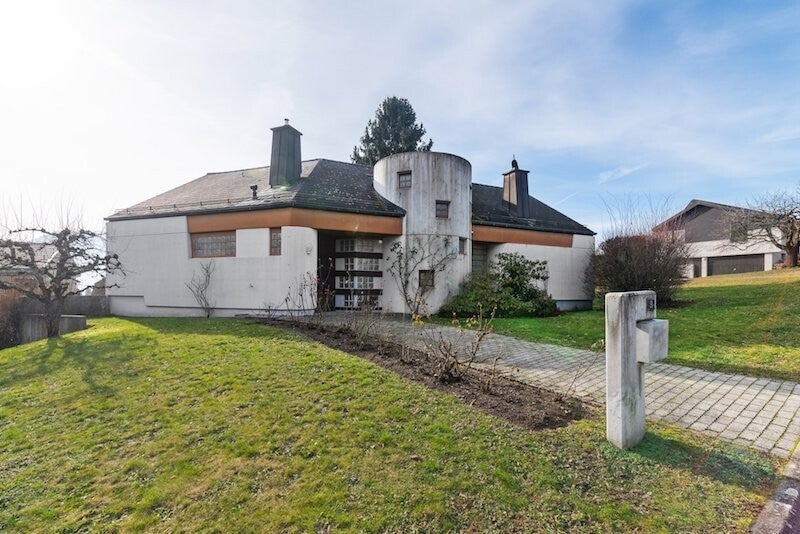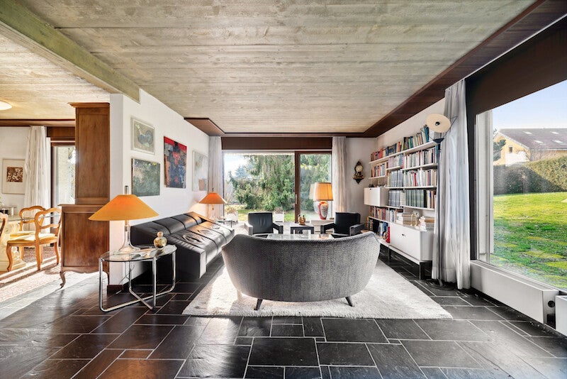 Bâtie en 1975 par l’architecte Rolf Gerster, cette maison profite de magnifiques volumes et d’une belle luminosité. Elle propose de très belles prestations et des matériaux de haute qualité pour l'époque. L’alliance du béton brut et du bois confère à l’ensemble un style unique. Charme et originalité sont les maîtres-mots de cette propriété d’exception.
